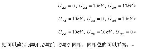 3,7.定相的两侧设备应有公共点。例如:两端待并接的35kV系统的中性点都已接地或经消弧线圈接地,10kV系统的母排电压互感器中性点。都已接地。