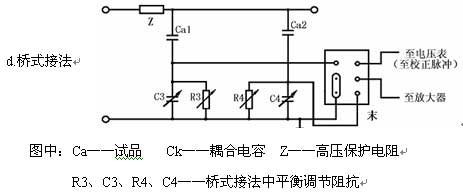 试品Ca在试验电压下产生局部放电时,放电脉冲信号经耦合电容Ca 送入输入单元,由输入单元拾取得脉冲信号,经低噪声前置放大器放大,滤波放大器选择所需频带及主放大器放大(达到所需幅值与产生零标志脉冲)后,在示波屏的椭圆扫描基线上产生可见的放电脉冲,同时也送至脉冲峰值表显示其峰值。