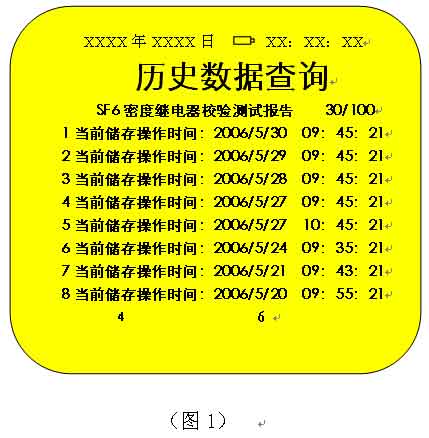 进入历史数据查询功能后。屏幕最多可一次显示8条信息(信息是按时间顺序排列的,图1所示)。选中想查看的信息的前的数字即可查看完整的测试报告,(图2所示)